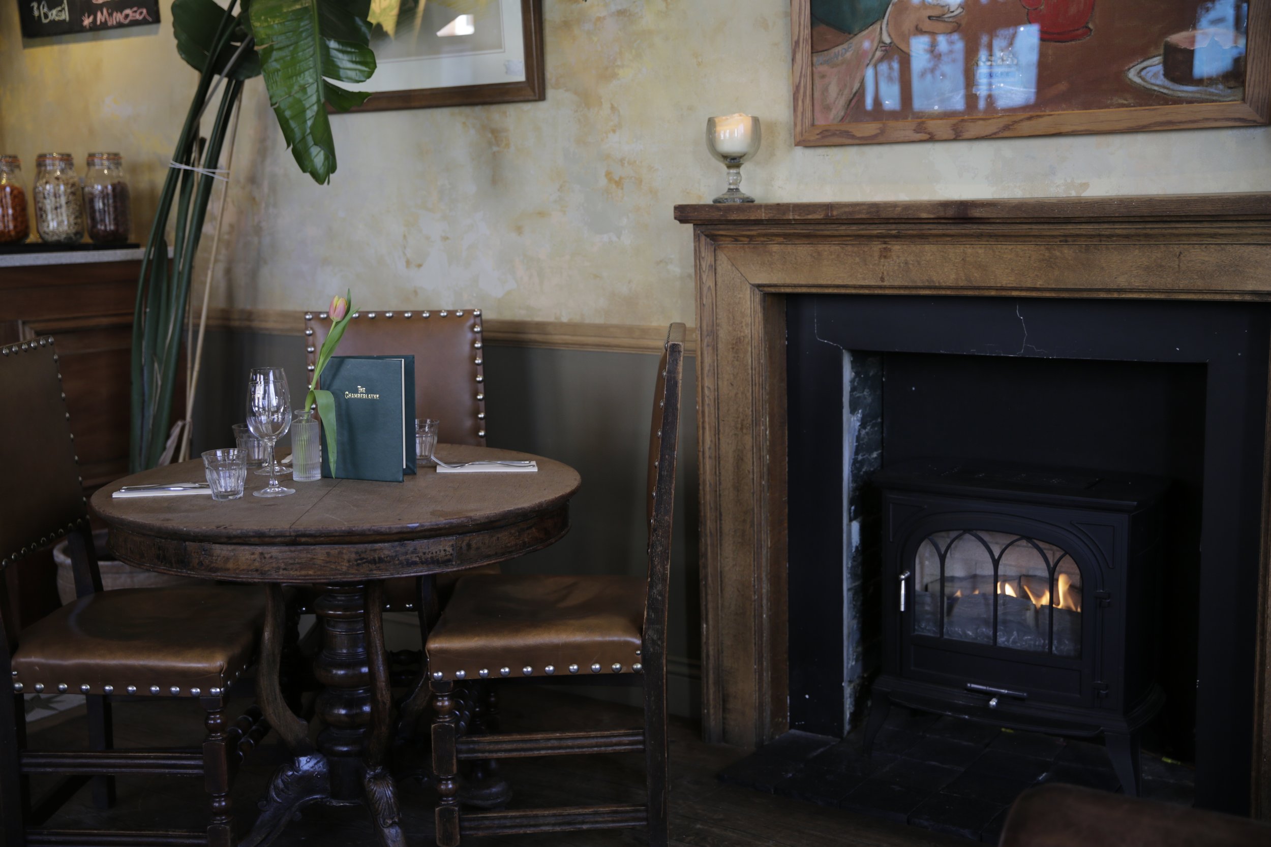 Warm and inviting, this fireside table is ideal for cosy winter evenings. Perfect for enjoying a drink or meal by the crackling fire, either with old friends, or maybe even a date?